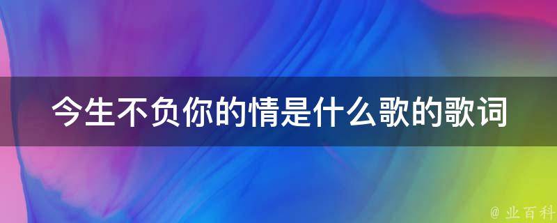 今生不负你的情是歌曲《错过》中的歌词,由何启弘作词、刘明瑞作曲、陈进兴编曲、李克勤演唱,发行于1995年07月23日。歌曲的创作一般有三种方式:一是先有文辞,后据之谱曲;二是先曲后词,依声填词;三是通过已有曲或词,重新谱写词曲,属于改编或翻唱。