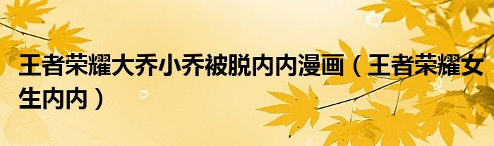 关于王者荣耀大乔小乔被脱内内漫画,王者荣耀女生内内这个很多人还不知道,今天菲菲来为大家解答以上的问题,现在让我们一起来看看吧!