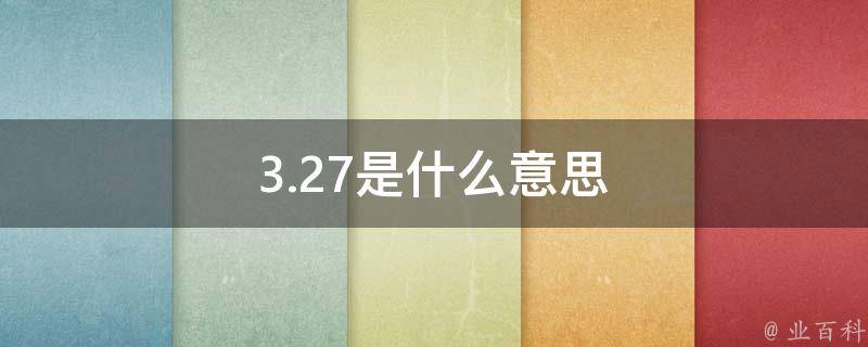 3.27的意思是3月27日。3月27日是公历一年中的第86天(闰年第87天),离全年的结束还有279天。3月27日是世界戏剧日,世界戏剧日是国际戏剧协会于1961创立的一个纪念日,旨在引起全世界人民对戏剧艺术的重视。