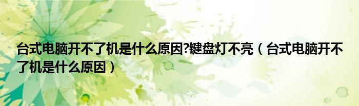 大家好,小联来为大家解答以上的问题。台式电脑开不了机是什么原因?键盘灯不亮,台式电脑开不了机是什么原因这个很多人还不知道,现在让我们一起来看看吧!