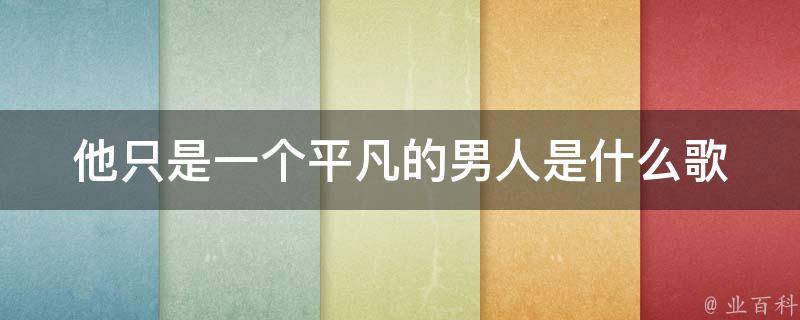 他只是一个平凡的男人是歌曲《男人的一生》,由黄静美演唱。部分歌词是:他只是一个平凡的男人,却要演好不同的身份。他是爸爸、丈夫和儿子,唯独自己没有依靠的人,最后他被生活逼成了神,所有心酸无奈自己吞。
