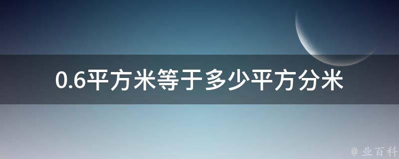 0.6平方米等于60平方分米。1平方米=100平方分米,0.6*100=60平方分米。平方米是面积的公制单位,为边长为1米的正方形的面积。在生活中平方米通常简称为平米。港台地区则称为平方公尺。
