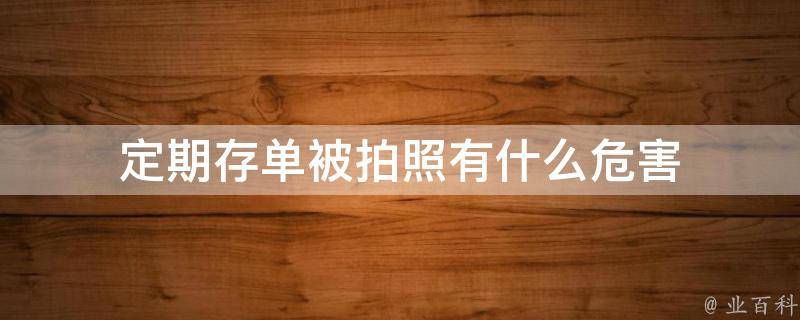 定期存单被拍照有被伪造的风险。一般情况下,对定期存单拍照的都是银行的工作人员,拍照也只是为了留存计算业绩的,没有什么危害。但如果是被别人拍照,就可能会面临着存单被伪造的风险,但即使存单被伪造,也无法提取里面的金额,因为银行提取金额会经过重重检验,只要存款人不泄露个人重要信息是不会有影响的。