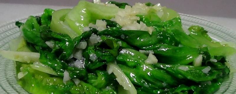 2、炝拌生菜:炝拌生菜是一道美食,由生菜、干红辣椒、生抽、盐、蒜、色拉油、白糖、白醋等制作而成。注意闻到香味要立即关火,以免过火。