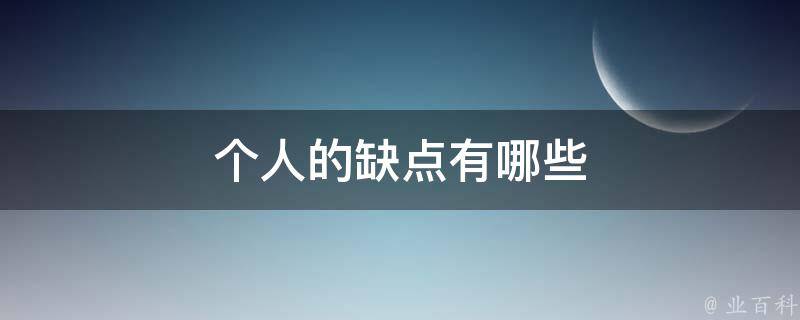 个人的缺点有内向、爱发脾气、固执、交际差、好高骛远、感情用事、逻辑性不佳、不自信、刻薄、小心眼、自私、做作、虚伪等。人需要通过理论学习,不断开拓工作思路,敢于打破旧模式,改变一些习以为常的东西。保持谦虚谨慎,不断修正错误。