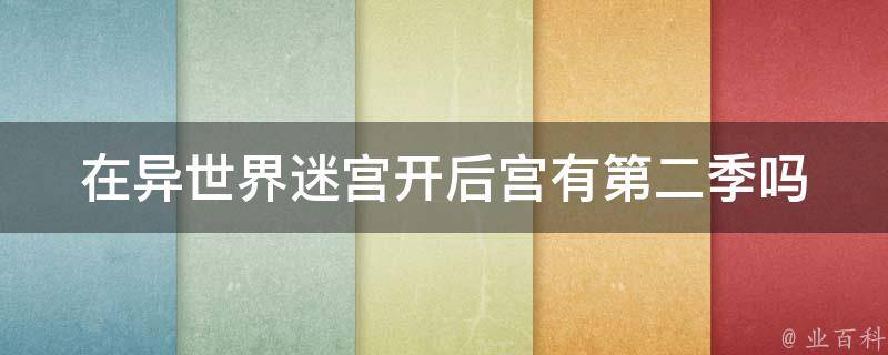 在异世界迷宫开后宫没有第二季,《在异世界迷宫开后宫》是由日本漫画家冰树一世根据同名轻小说改编的漫画作品。于《月刊少年Ace》2017年5月号刊载序章,同年6月号正式开始连载,单行本日文版由角川书店出版。