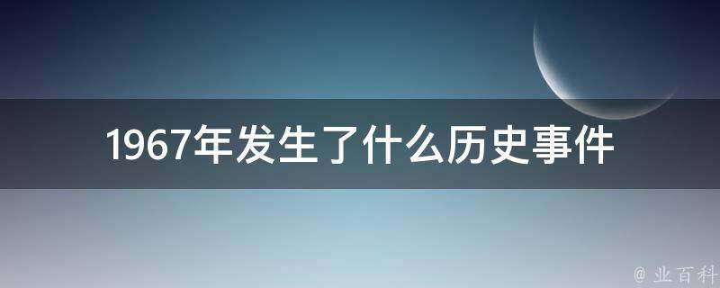 1967年发生的历史事件有:中国和平二号固体燃气象火箭试射成功;中国第一颗氢弹空爆试验成功;英廷正式放弃加拿大自治领的称号,改为加拿大;第三次中东战争;东南亚国家联盟成立等。