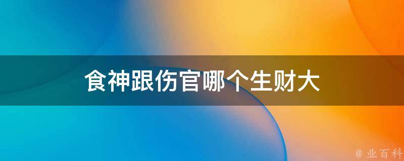 伤官生财大。因为食神生正财,伤官生偏财,所以,伤官的谋财能力远大于食神。伤官是中国古代子平术中的十神。伤官属于杀伤劫刃四凶,故伤官当令需要逆用,即制化,制伤者印,化伤者财。伤官还代表智慧、财富、子女、成名等。身强食伤旺的人,遇到好的流年,必定名扬四海。
