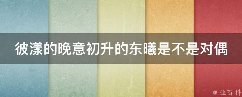 彼漾的晚意初升的东曦不是对偶。对偶通常是指两个句子在结构、字数、平仄等方面形成对称,以达到修辞效果。在这两句话中,彼漾的晚意与初升的东曦并没有形成明显的对称结构,所以并不是对偶。