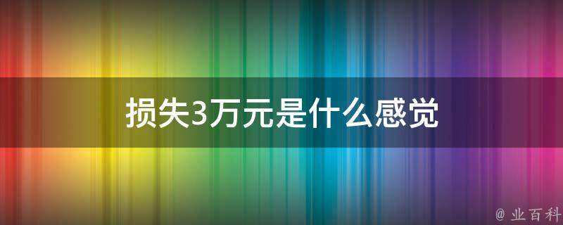 损失3万元是什么感觉