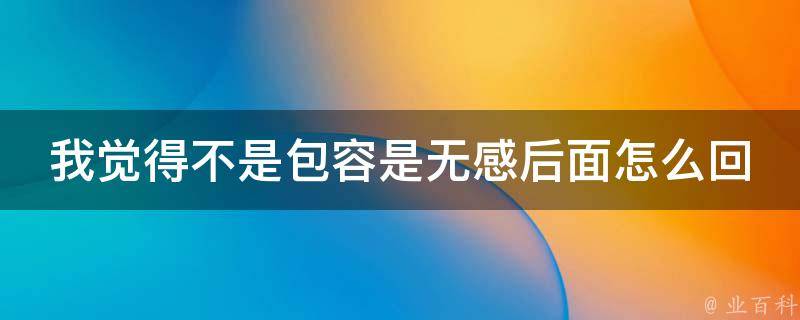 我觉得不是包容是无感后面可以回复:喜欢一个人,即使对方有缺点,也会去体谅、包容,没有人是十全十美的,有不可原谅的错误和缺点,改正就可以了。人首先是为自己而活,如果失去了自我,是不会觉得快乐的。努力让自己变得优秀,会有更多选择的权利,优秀的人更值得相遇。