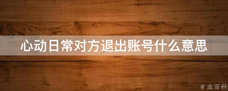 心动日常对方退出账号的意思是对方停止使用这个应用程序或社交平台账号。心动日常是一款为情侣设置的软件,能够为用户提供社交聊天,也能提供爱情记录,同时软件也能够帮助用户为心爱的人传达属于自己的爱意。