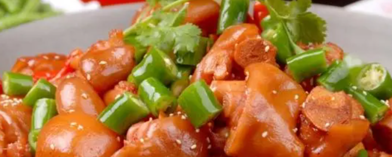 干锅黄豆猪尾是以猪尾巴、黄豆为主料制作的菜品。猪尾巴肥而不腻、瘦而不柴、香而可口,实在令人垂涎三尺。猪尾即猪的尾巴,也称皮打皮、节节香,由皮质和骨节组成,皮多胶质重,干锅的烹饪方法使其更加咸香麻辣。