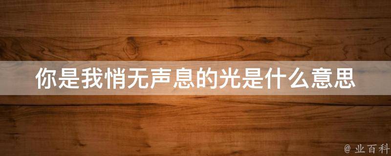 你是我悄无声息的光的意思是:对方是你的希望,是你的光明,你从对方那里获得了力量和勇气,帮助你克服生活中的困难和挑战。这句话表达了很强的情感和感激之情,说明对方在你生命中扮演着非常重要的角色,给你带来了积极的影响和启示。