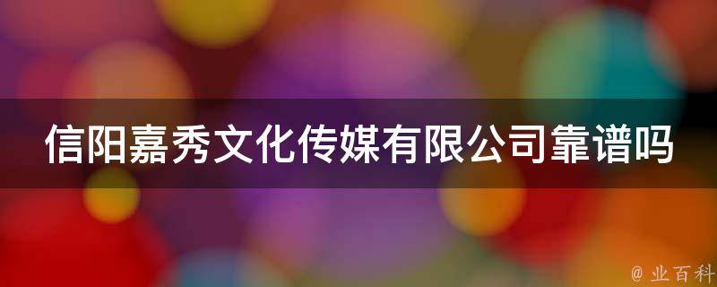 信阳嘉秀文化传媒有限公司靠谱。嘉秀文化传媒是一家正规的经营单位,文化底蕴深厚,内部管理比较规范,根据企业实际情况进行正常宣传,是靠谱的公司。嘉秀文化传媒还是比较靠谱的,运营正常,发展良好。成立于2021年,位于河南省信阳市,是一家以从事广播、电视、电影和录音制作业为主的企业。