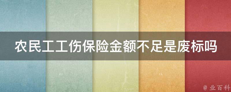 农民工工伤保险金额不足不是废标,没这项内容。农民工工伤保险就是专门针对农民工工伤的一种保险。一般为农民工先行办理了工伤保险的用人单位都必须为其所有招用的农民工缴纳工伤保险费。农民工工伤保险费是由其所在地的用人单位缴纳的,农民工个人不需要缴纳工伤保险费。至于具体的农民工工伤保险费,则是各地政府根据国家相关条例,再结合当地实际情况来进行收取。