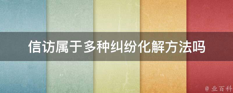 信访不属于多种纠纷化解方法,信访是对政府部门提出建议、意见或者投诉请求的活动。劳动争议处理方式:协商程序;申请调解;仲裁程序。诉讼程序信访是指公民、法人或者其它组织采用书信、电子邮件、传真、电话、走访等形式,向各级人民政府、县级以上人民政府工作部门反映情况,提出建议、意见或者投诉请求,依法由有关行政机关处理的活动。