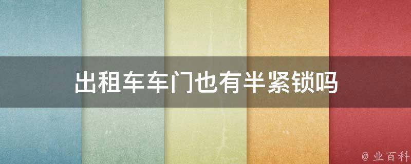 出租车车门没有半紧锁。出租车车门通常是机械式的,可以通过手动开关来控制车门的开闭。通常来说,出租车车门没有半锁功能,因为这种功能对于出租车来说并不实用。在出租车行驶过程中,乘客通常需要随时上下车,而半锁功能会限制乘客的自由进出,不利于乘客的便利性。