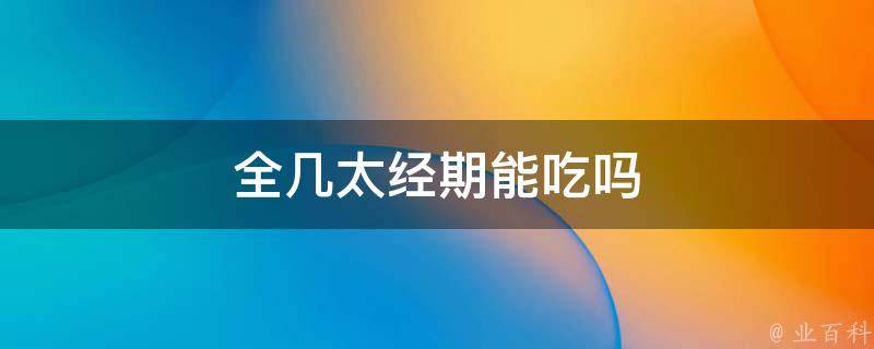 全几太经期不能吃。全几太是一种益于提高身体免疫力,能够活络经脉、消肿止痛、活血化瘀以及有造血作用的膳食营养,在经期吃可能会适得其反。全几太中含有白芷粉、桃仁粉、蒲公英粉、姬松茸粉、山楂粉、金银花粉、重瓣红玫瑰粉、针叶樱桃粉、茯苓粉等。