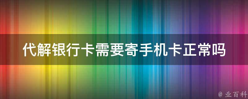 代解银行卡需要寄手机卡并不正常。在处理银行卡相关业务时,通常只需要提供个人信息和身份证明文件,而不需要提供手机卡等敏感信息。因此,如果有人要求您提供手机卡等敏感信息,请务必保持警惕,谨防诈骗。