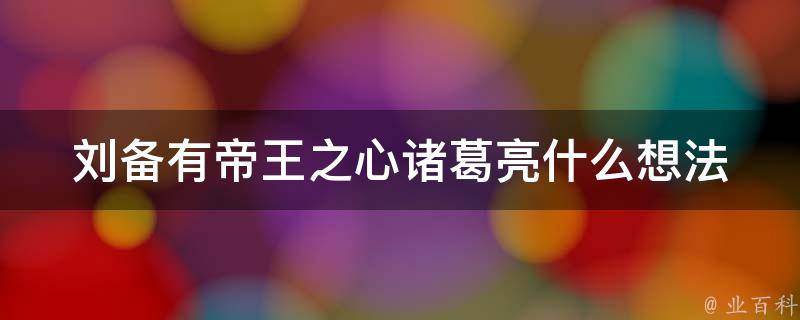 刘备有帝王之心诸葛亮首先提出了拥戴刘备为皇帝。刘备当然是要推让的:汉献帝还在,我们应该灭了曹丕,把汉献帝请出来继续当皇帝才对,怎么可以自己称帝?不行,不行,绝对不行。诸葛亮知道刘备的心思,也知道刘备的心病。心病是汉献帝还活着,心思是当皇帝也得做足面子。