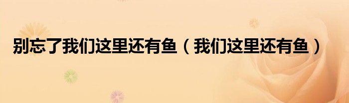 大家好,我是小科,我来为大家解答以上问题。别忘了我们这里还有鱼,我们这里还有鱼很多人还不知道,现在让我们一起来看看吧!