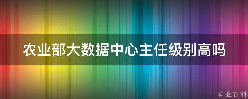 农业部大数据中心主任级别高,农业农村部大数据发展中心为正局级公益二类事业单位,主要职责是开展数字农业农村发展战略和政策研究,承担农业农村数据汇集管理、综合分析和整合应用等工作。农业农村生产生活生态中每一事物的特征都可用短小、精细的数据描述和记录,正是这些小个体的数据才构成了农业农村的大数据。