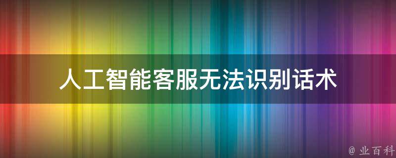 人工智能客服无法识别话术