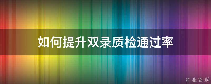 可以通过加强培训、完善流程、优化服务等多种方式来提高双录质量,确保通过率。双录指的是银行在销售金融产品时,需要对整个过程进行录音和录像。双录质检则是录音和录像进行人工或智能的质检检测。随人工智能、云计算等信息技术的发展,大部分银行都采用了智能双录质检。