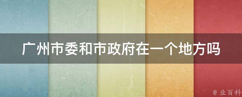 广州市委和市政府不在一个地方。广州市委在越秀区法政路30号,而广州市政府在越秀区府前路1号。广州市人民政府是广东省广州市的国家行政机关,是副省级行政机关。广州是国务院定位的国际大都市、国际商贸中心、国际综合交通枢纽、国家中心城市、国家综合性门户城市、国家历史文化名城。