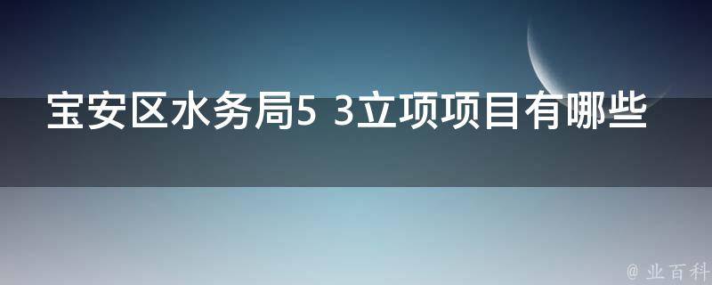 最佳答案1、5个水务工程:深圳机场至大铲湾港区通道工程、深圳机场至大铲湾港区通道工程(机场北至大铲湾港区段)工程、新圳河综合整治工程、沙井河综合整治工程、观澜河干流碧道工程。2、3个水务前期项目:宝安区水务局光明水厂选址及配套输水管网工程前期工作、宝安区水务局应急分质供水工程前期工作、宝...