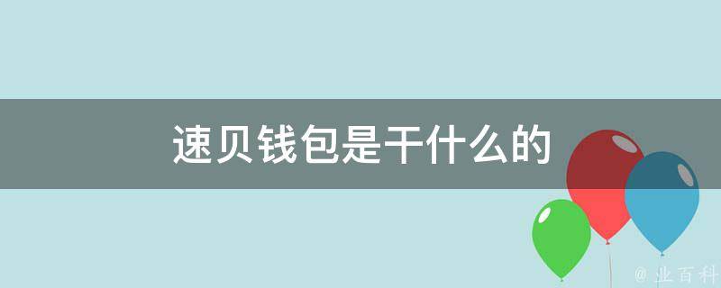 速贝钱包是提供数字货币的存储和交易服务。用户可以将数字货币存储在速贝钱包中,并通过速贝钱包进行数字货币的转账、支付等操作。需要注意的是,使用速贝钱包时,用户需要确保自己的账户安全,避免泄露密码或私钥等敏感信息。