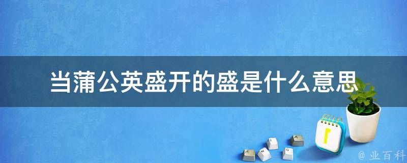当蒲公英盛开的盛是指茂盛、繁盛。蒲公英盛开可以理解为花朵茂盛地开放,展现出一片繁荣和生机。盛本义是把东西放在器皿中,后分化出名词义,引申出盛满、丰盛、众多,并由此引申为兴旺、繁茂、美好。