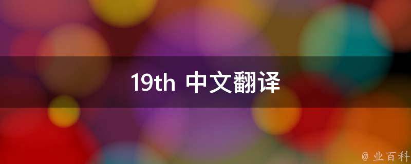 19th的中文翻译是第十九。例句有The 19th century saw many changes。意思是19世纪发生了许多变化。