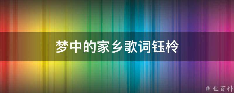 钰柃演唱的梦中的家乡歌词有:梦里又回到那个小村庄,我光着脚走在小路上,路边的大树向我招招手,它还记得我童年模样,梦醒我揉揉朦胧的双眼,仿佛下一刻你就出现,早已忘了是哪一天,我背上行囊背影孤单,我梦中的家乡,让我魂萦梦牵的地方,有过多少欢乐和向往,是我童年记忆的天堂,我梦中的家乡,那清澈的小河水流淌,给我欢笑伴我成长,是我永远不变的守望。