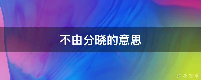 不由分晓的意思是不通事理、不懂事。有的时候这种情况经常发生,但多数发生在能够做主的人身上,这种人仗着自己是长者,有经验,或有势力、权力,往往遇到事情不由分晓,也就是不给那个人解释、诉说的机会,自己做主。