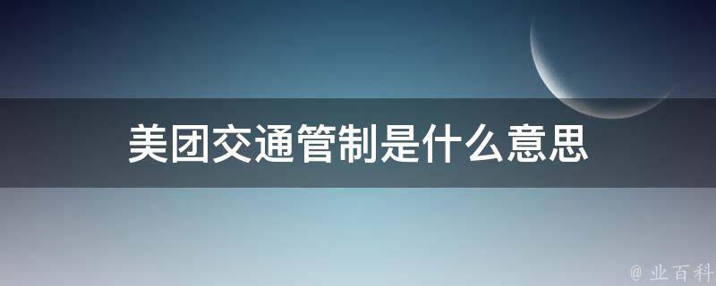 美团交通管制的意思是因为某种安全方面的原因,对部分或者全部交通路段的车辆和人员通行进行控制的措施,一般被管制的路段不能走。在美团选定配送区域后,显示正常营业的商家均可进行配送。对于管控区,则会显示由于交通管制,暂时无法为您提供服务字样。