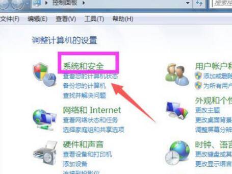 打开控制面板,如图点击“系统和安全”。