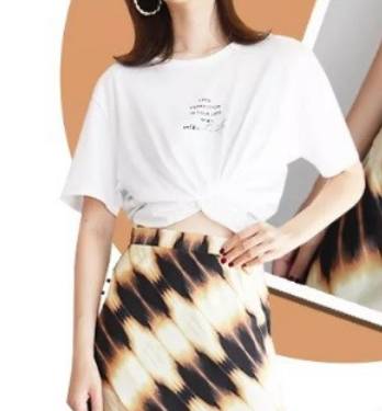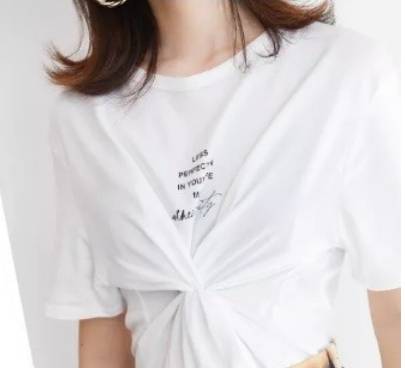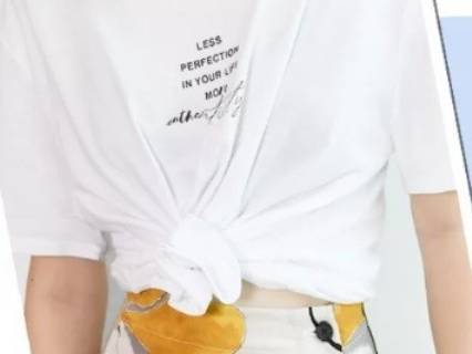1、腰部打结:将T恤的一边向外翻,在腰部合适的位置用橡皮筋打个结,然后整理衣摆的褶皱。