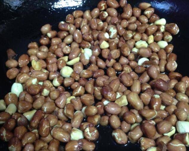 7.等这个花生颜色稍微有一点变得深了,就可以了关火了(颜色不要太深了,炒好的豆子会自热,如果炒的豆子颜色深了,最后的成品就会糊掉了)。