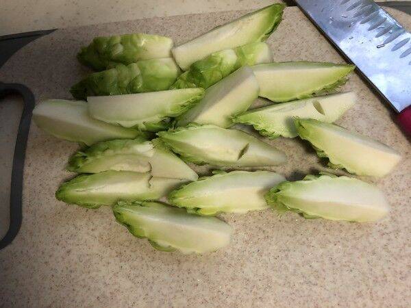 2、用手一个一个把小的儿菜头掰下,洗净。