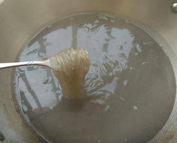 5、锅中烧开水,下入红薯粉丝煮5分钟左右关火。