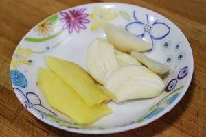 3、姜、葱、蒜切好。