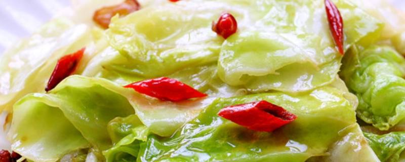 9、调入盐、白醋和少许白糖,翻炒至卷心菜断生即可。