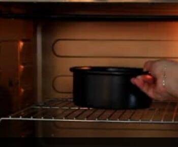 7、倒入模具中,用刮刀或是平底铲抹平表面,将烤盘放在另一个烤盘里,另一个烤盘里加入1~2厘米的水,145-150度烤60-70分钟即可。
