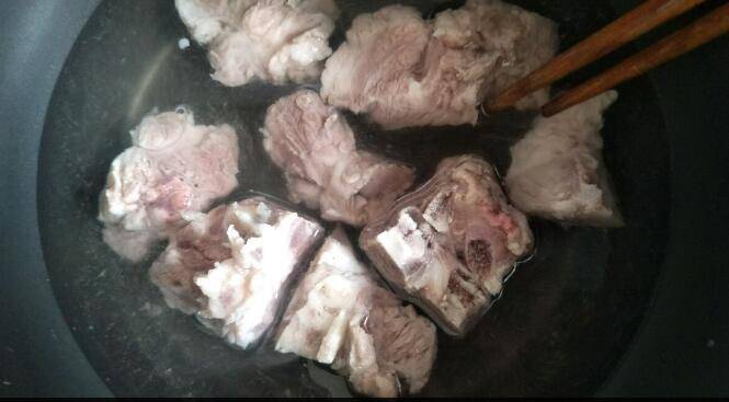 3、焯过水的猪尾骨头和猪心过凉水洗净血水。