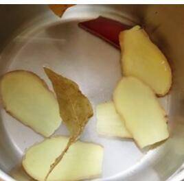 3、用水泡着姜片、香叶、桂皮备用。