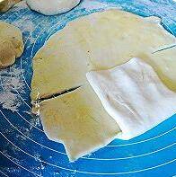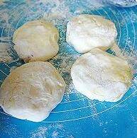 3、醒好的面团均匀的分成4个小面团,看上去面团还是很软的。