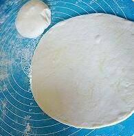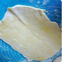 4、取一个面团揉匀,尽量擀成长方形,薄薄地刷上一层油,喜欢的可以撒点盐或者葱花,有咸淡口味。