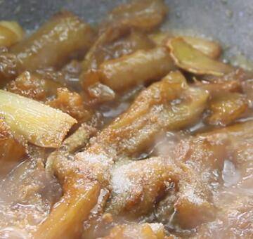 4、加黄酒焖透,加入150克左右高汤,撒少许胡椒粉,加盐、味精、鸡精佐料调味。
